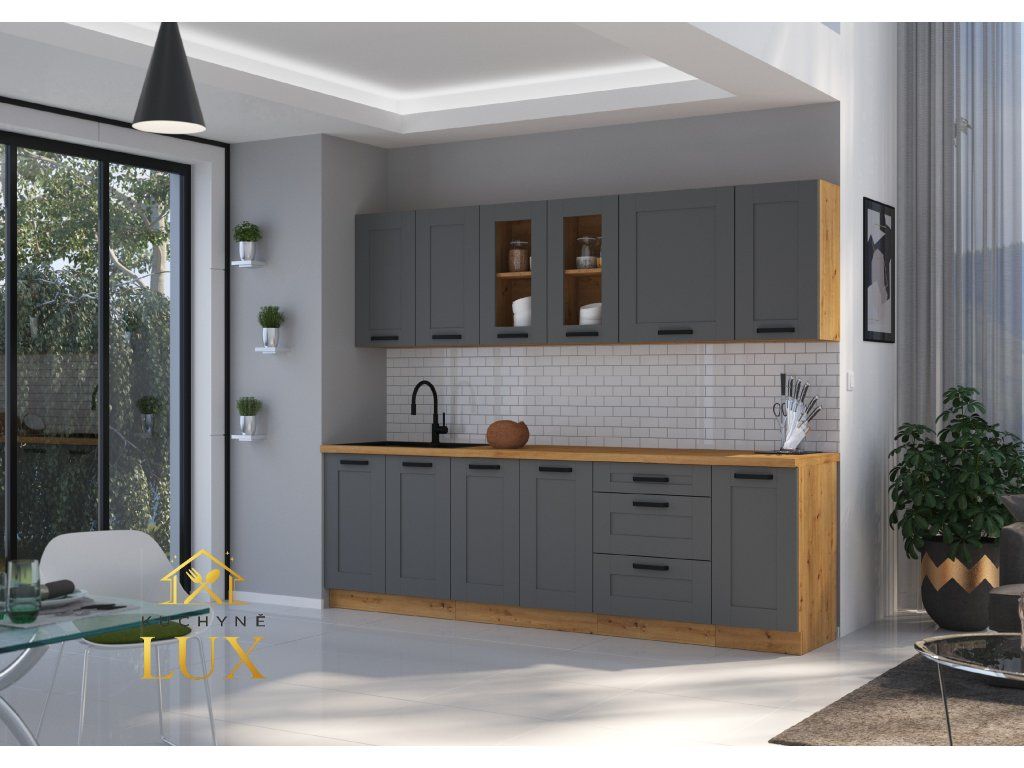 Kuchyňská linka 260 cm Luna 3 - Dub artisan + Dust grey